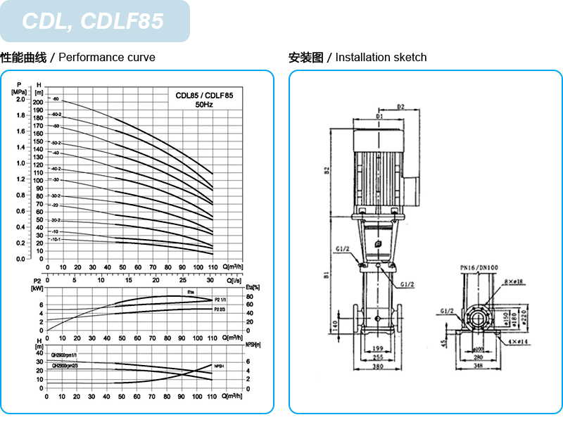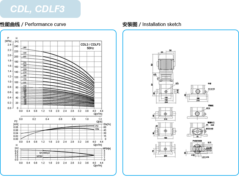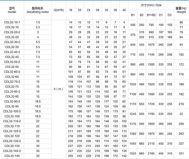 CDL/CDLF是一种多功能产品,可以输送从自来水到工业液体的各种不同介质,适应于不同温度、流量和压力范围,CDL适用于无腐蚀性液体,CDLF适用于轻度腐蚀性液体。