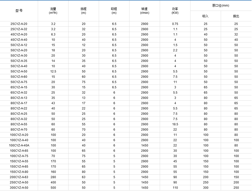 本公司生产的CYZ-A型自吸式离心油泵是根据国内外有关技术资料经消化、吸收、改进后研制而成的新型泵类产品,国内空白,独一无二,广泛适用于油库、加油站、油轮、油船、码头、油罐车、机场、分别输送汽油、煤油、柴油、航煤等,如改用耐腐蚀机械密封和不锈钢材质还可以适用于化工、制药、酿造、电镀、印染、造纸、电力、矿山等,输送介质温度-20℃~80℃,粘度≤100厘珀,含固量可达30%以下。