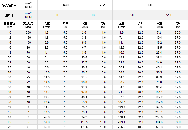 ◆ 你选型时表中流量不合适,可用电磁调速,变频调速,变换柱塞直径来调节流量,满足选型需要。
