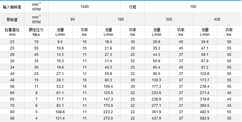 ◆ 你选型时表中流量不合适,可用电磁调速,变频调速,变换柱塞直径来调节流量,满足选型需要。