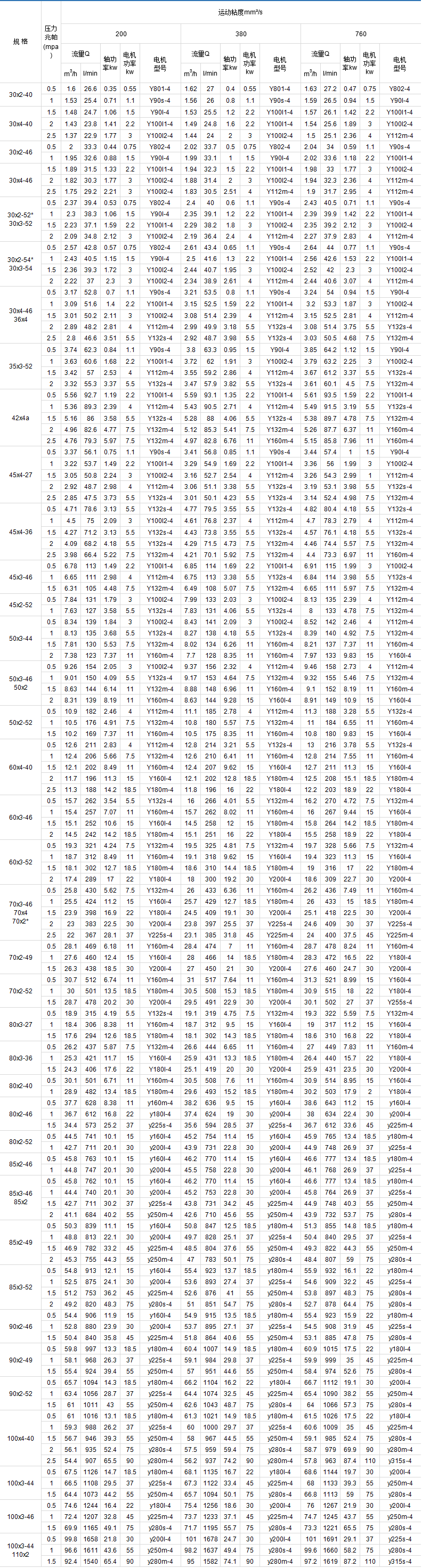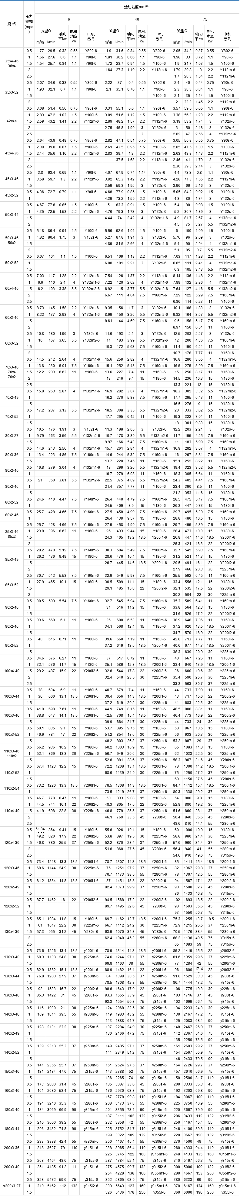 3GBW.3G.3GR系列螺杆泵性能参数表 (转速: 1450r/min)