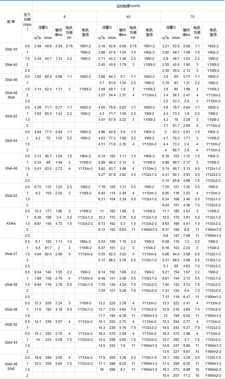 三螺杆泵适合输送无腐蚀性油类及类似油和润滑性液体。液体的粘度范围一般为3.0~760mm2/s(1.2~100`e),高粘度介质可通过加温降粘后输送,其温度一般不超过150℃。