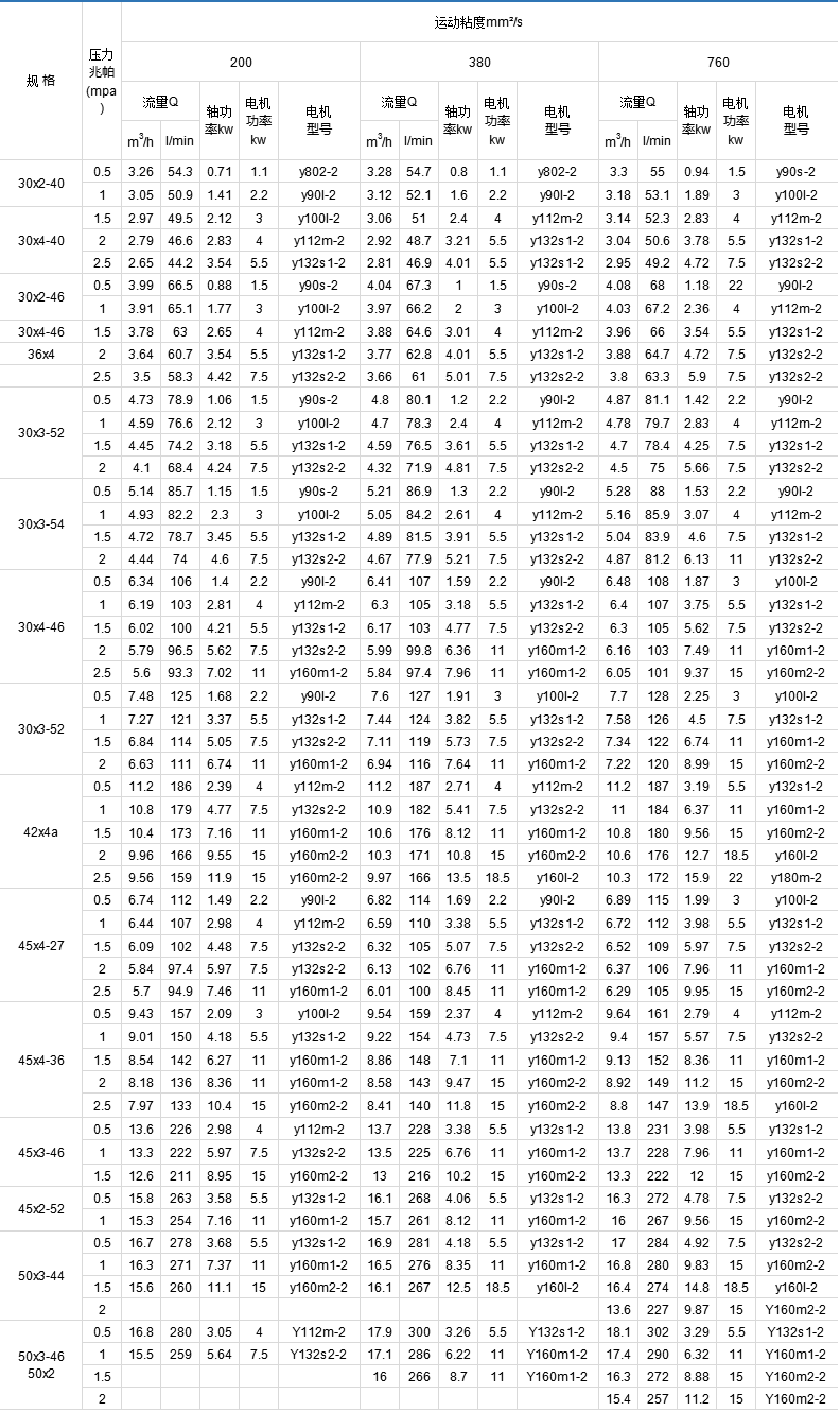 3GBW.3G.3GR系列螺杆泵性能参数表 (转速: 2900r/min)