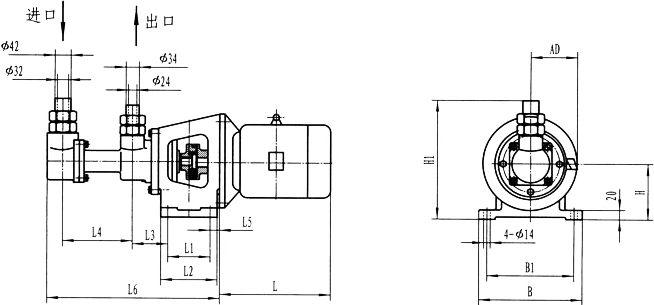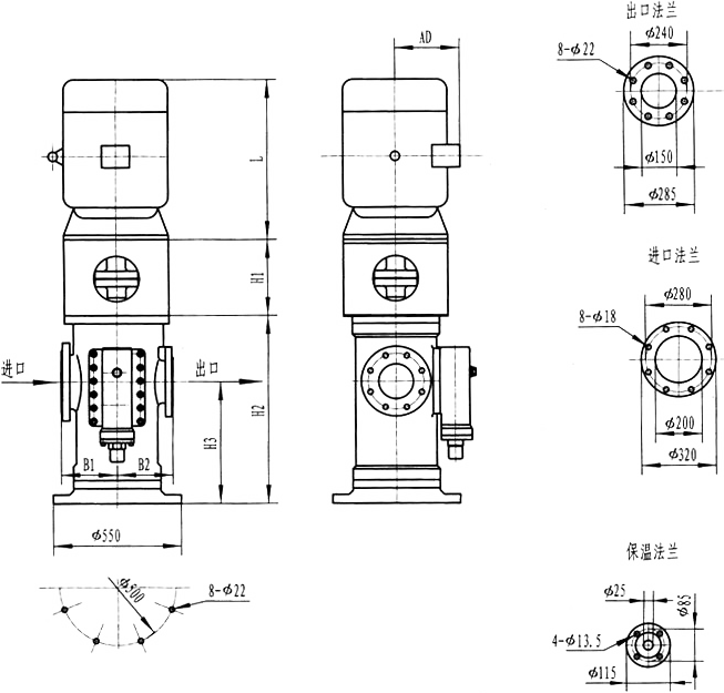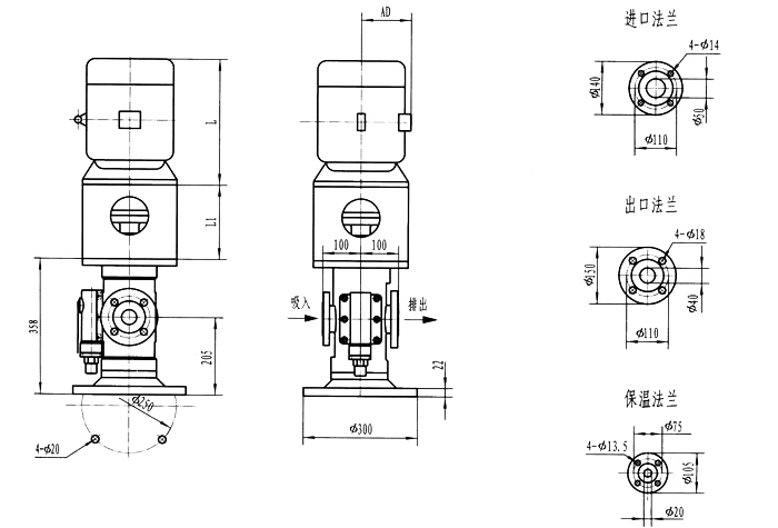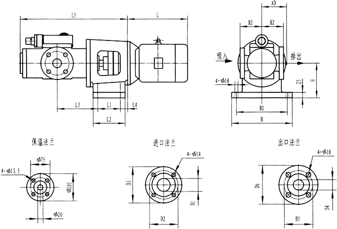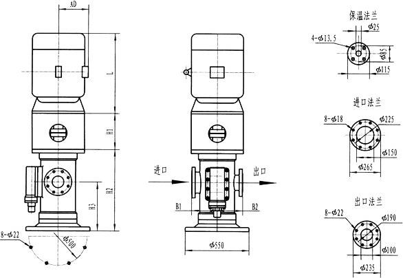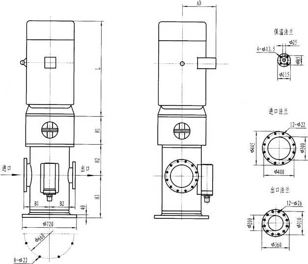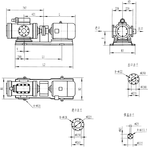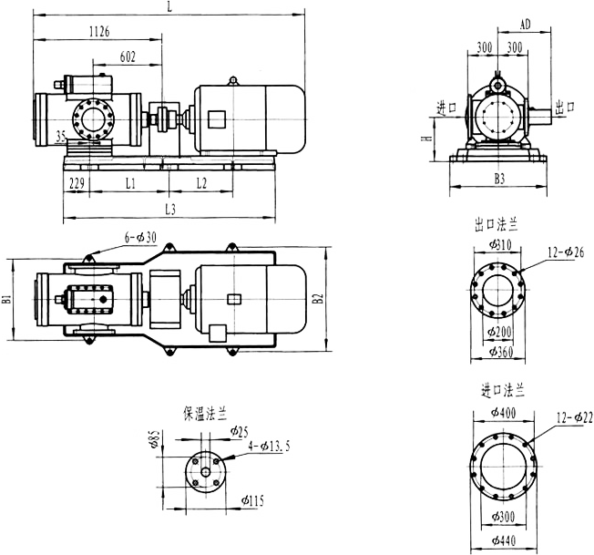 3GF30型法兰式泵外形及安装尺寸