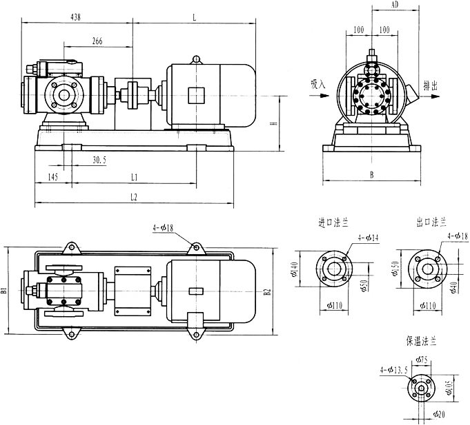 3GFBW50,3GF50型法兰式泵外形及安装尺寸