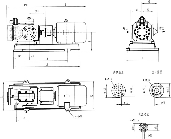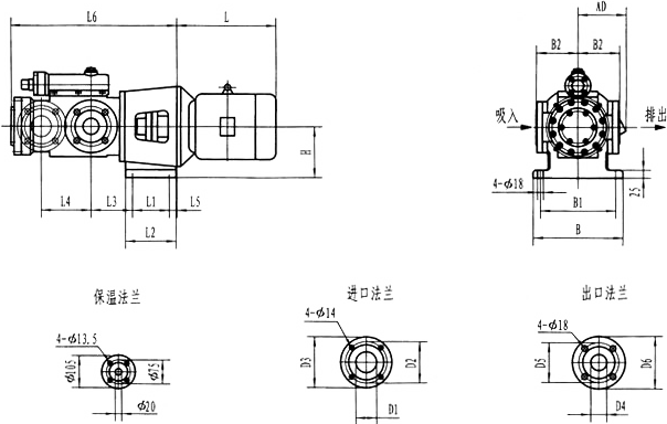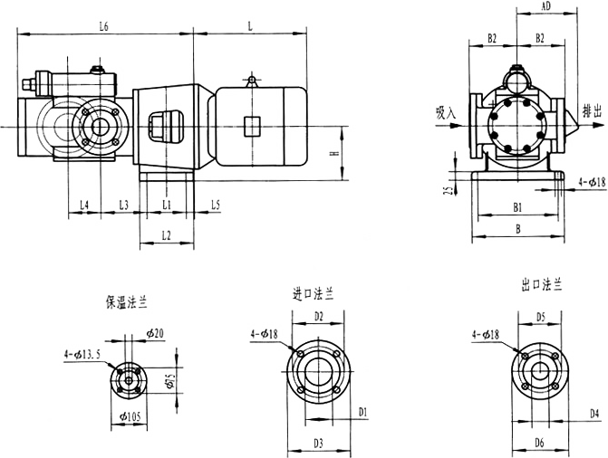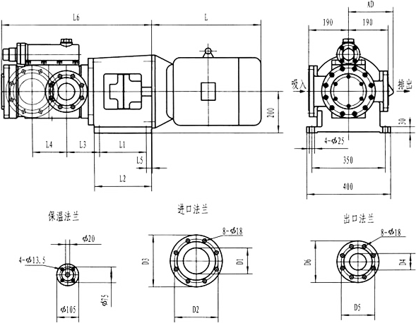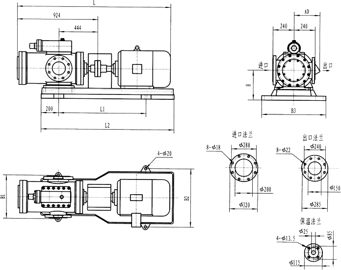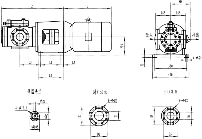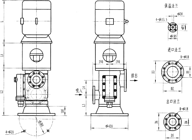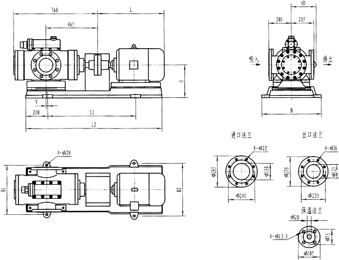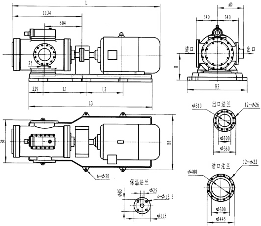 3GFBW60,3GF60型法兰式泵外形及安装尺寸