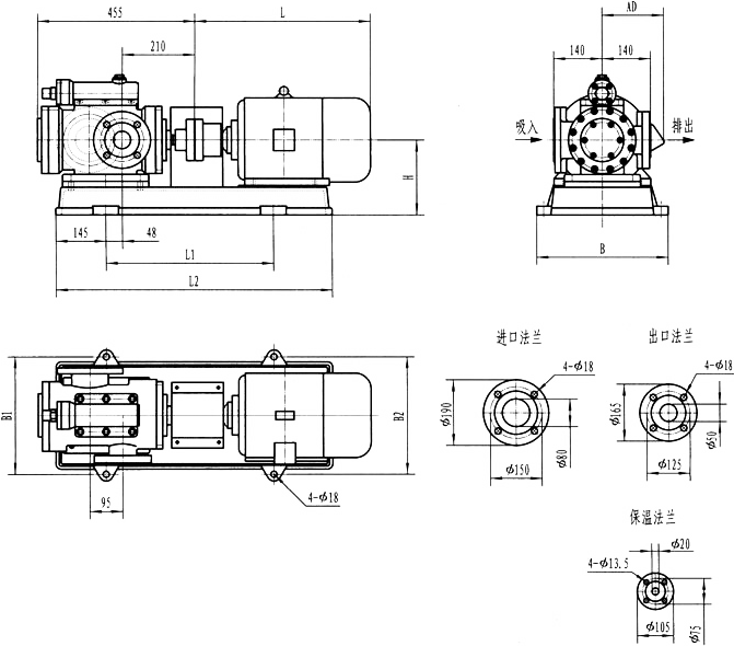 3GFBW45,3GF45型法兰式泵外形及安装尺寸