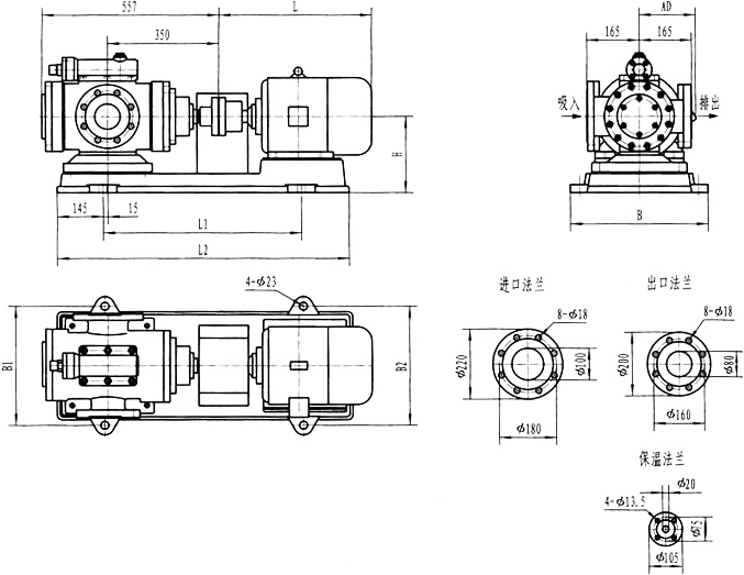 3GBW35,3GF35型法兰式泵外形及安装尺寸