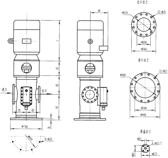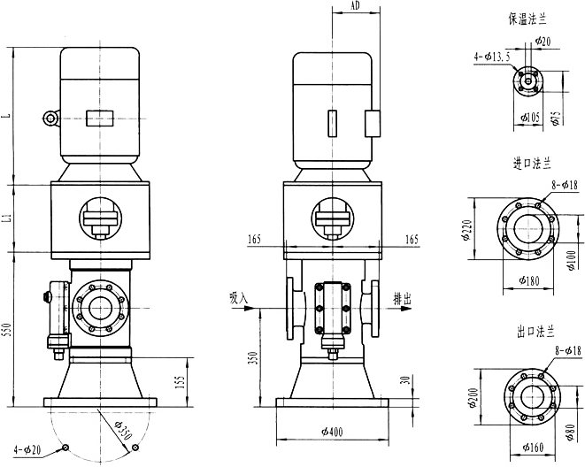 3GLBW180(200),3GL180(200)型立式泵外形及安装尺寸