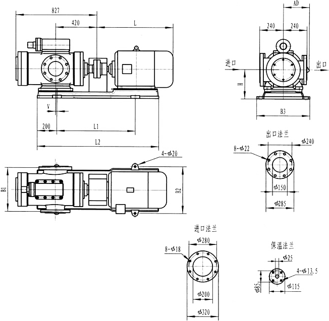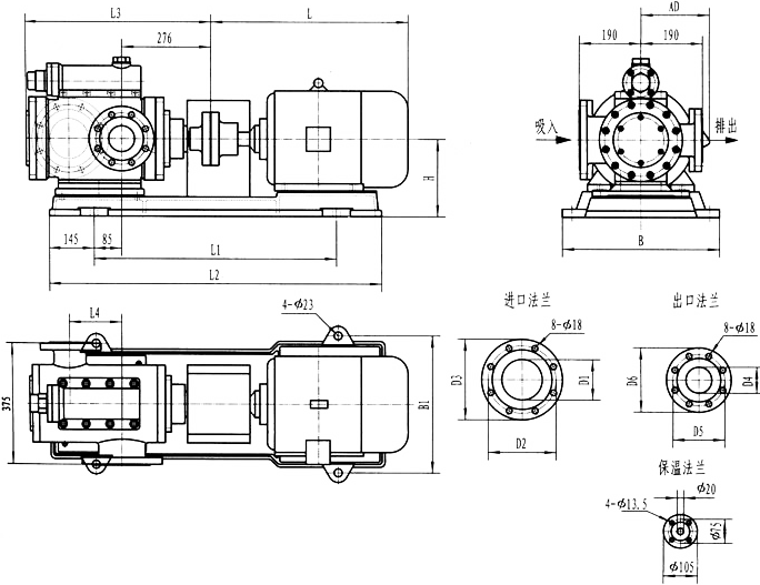 3GR36型法兰式泵外形及安装尺寸