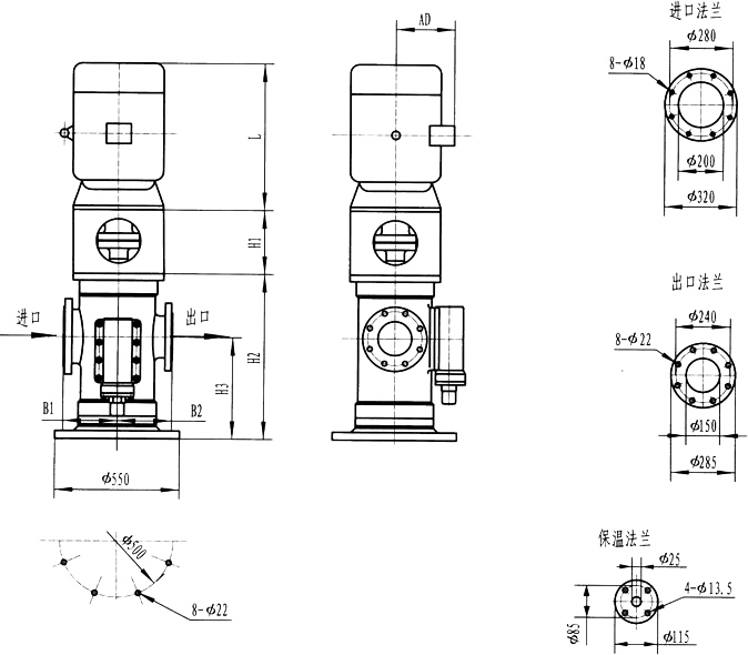 3GLBF80(85),3Gl80(85)型立式泵外形及安装尺寸