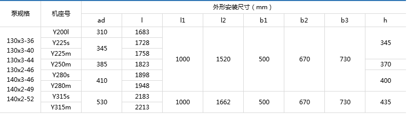 3GL130型立式泵外形及安装尺寸