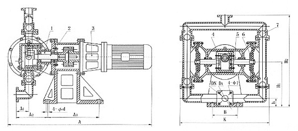 ◆ 根据不同介质,隔膜分为氯丁橡胶、氟橡胶、丁腈橡胶、四氟乙烯,完全可以满足不同用户的需要。过流部件也可根据用户要求,分为铁、不锈钢、铝合金,电机分为普通型和防爆型