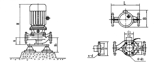 1、泵为立式结构,进出口口径相同,且位于同一中心线上,可像阀门一样安装于管路之中,外形紧凑美观,占地面积小,建筑投入低,如加上防护罩则可置于户外使用。