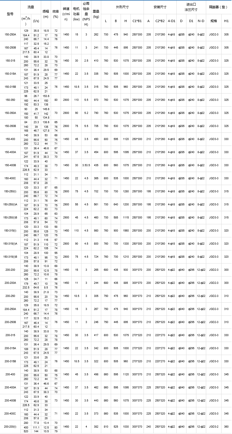 1、吸入压力≤1.0MPa,或泵系统最高工作压力≤1.6MPa,即泵吸入口压力-泵扬程≤1.6MPa,泵静压实验压力为2.5MPa。订货时请注明系统工作压力,泵系统工作压力大于1.6MPa时应在订货时另行提出,以便在制造时泵的过流部分和联接部分采用铸钢材料。